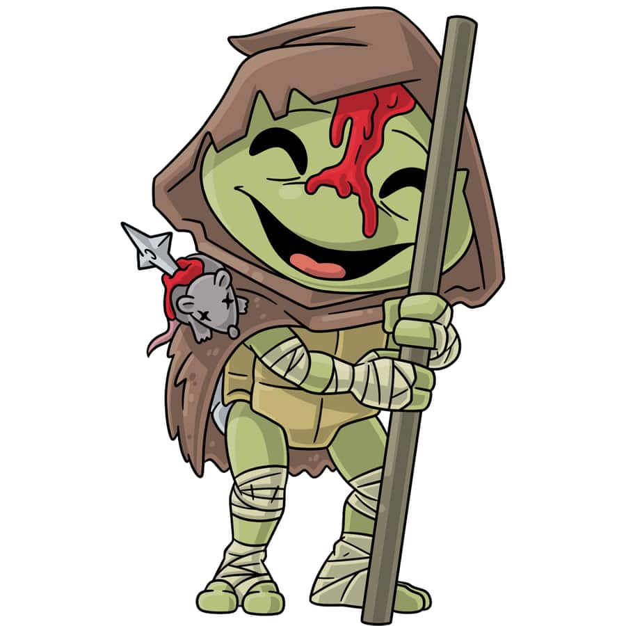 Donatello stands weakly against his bo-staff, his skinny legs barely standing, but still ready and able to defeat a horde of Foot Ninja. He stands happily, as he hears his father Splinter speak to him from beyond the grave, through the rat on his shoulder.