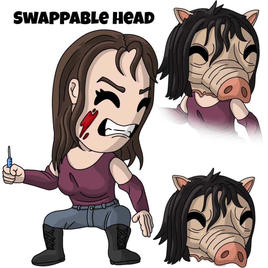 Amanda has passed her final test to be reborn as a Youtooz! The first partner of the Jigsaw killer stands in the outfit she wore when facing the reverse bear-trap, crouched down and holding a syringe. She also comes with a swappable head piece to make her wear her pighead mask