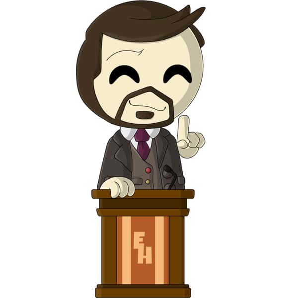 Are you ready for a lesson? Good, because the show’s about to start! Matthew stands up with a finger pointed up behind a podium, ready to teach us all about gaming, history, and all sorts of that good stuff.