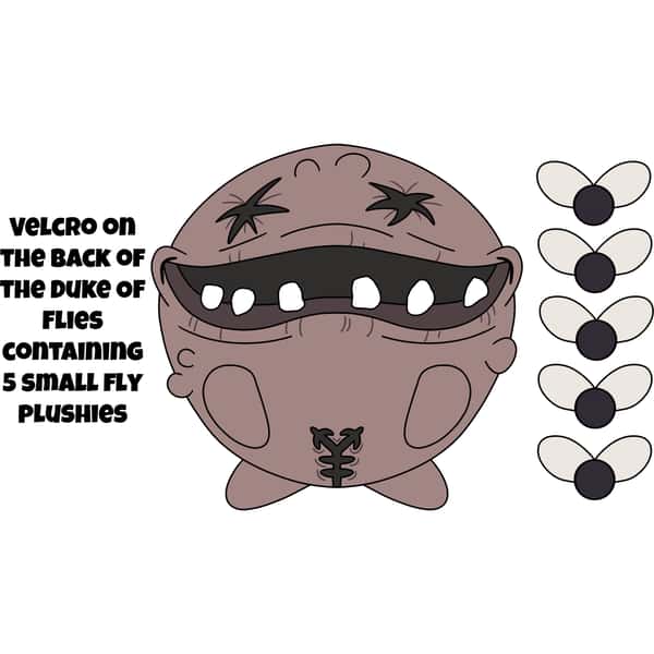 The Duke of Flies makes his Youtooz debut. This plush of the horrifying boss from The Binding of Isaac has a velcro pocket on its back for you to rip open and released 5 small fly enemy plushies
