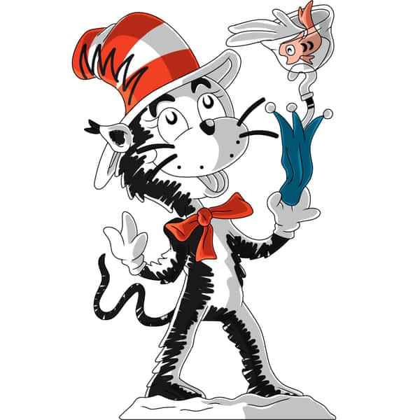 It’s the cat! he’s all wacky! wow!!! holding up an umbrella holding up a bowl holding up The Fish (his name is fish that’s crazy) What more could you want out a character like him?