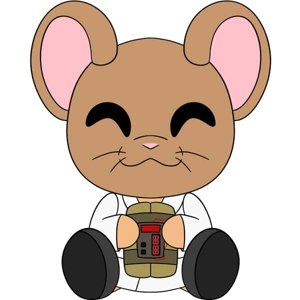 Blarg makes his most recent debut as a 9in youtooz plushie, based on his character from gta5. He's wearing a rat mask and a bath robe while holding C4