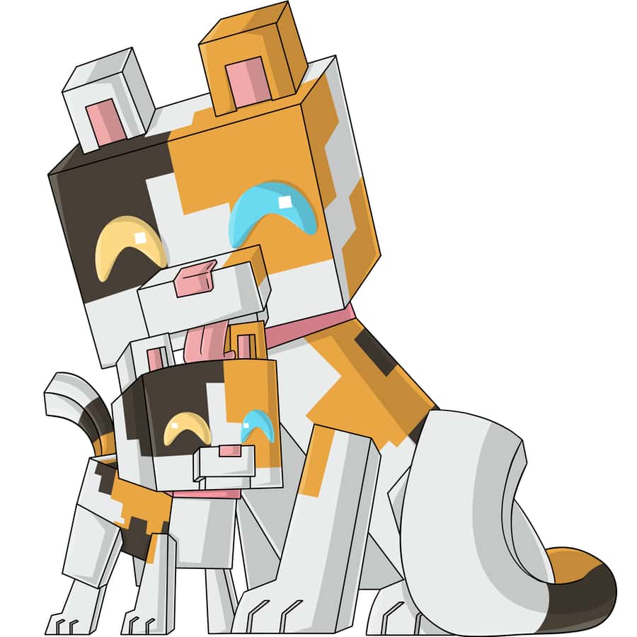 Calico Cats from minecraft make their youtooz debut as a figurine! The adult cat sits there and cleans the little kitten which is rubbing against her