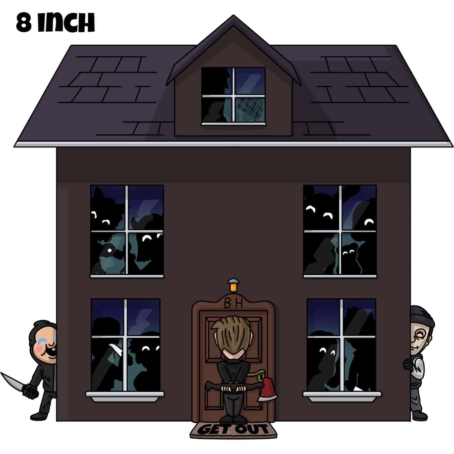 The house of horror joins the Youtooz universe. Blumhouse is the studio behind so many horror icons. In this 8 inch vinyl figure. The house from their logo has some visitors. The Man from Hush, The Babyface Killer and the Lead Purger. But theres even more creepy characters on the inside, celebrating over 25 years of Blumhouse