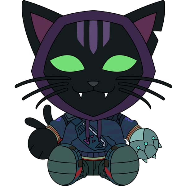 You are... definitely a big cat Nyanja debuts as a youtooz, now in Kuro form! He is wearing a dark blue hoodie, with dark sweatpants and a bag going over his chest. His ears and whiskers poke out of his hood, and inside he has big green eyes