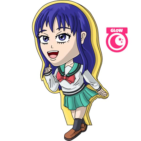 Teruhashi, the perfect pretty girl has become the perfect vinyl figure! Her angelic aura behind her glows in the dark, making for one truly “oh!”-Inducing figure