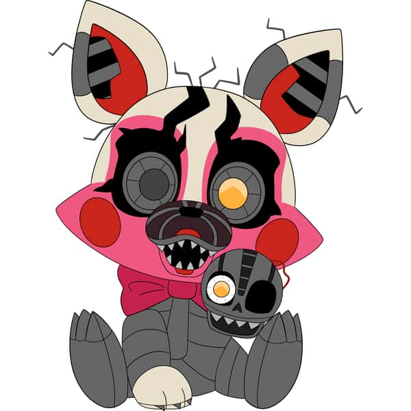 Nightmare Mangle makes their youtooz debut as a cuddly 9in plushie! They sit there with a pink and off white head with a lot of damage to the face. Their entire body is exposed endoskeleton that looks as though it has been torn apart and put back together. There is also an additional head, that stares.