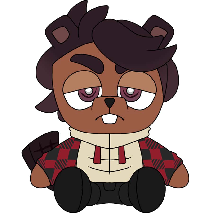 The beaver!! Effarby's plush dawns a cream sweater with red & black diamonds on the sleevs, with a bored expression over his face.