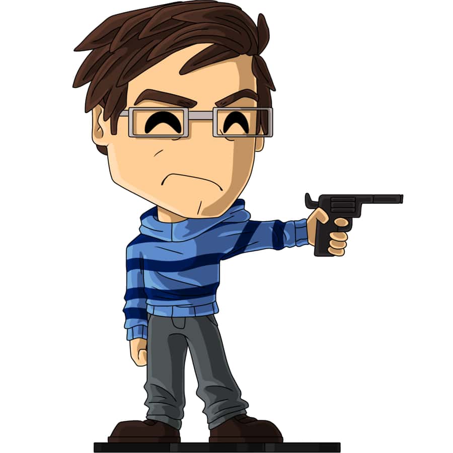It’s everyone’s favorite gun-wielding maniac! that’s basically what a film student is. Alex is doing that exact thing, aiming a gun at someone with a not-very-happy expression on his face.