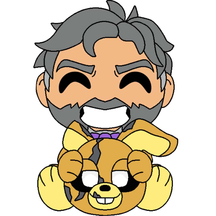 Collab w/ @/BasketFrights on Twitter “Symmetry, my friend!” William Afton comes back, this time as a 9 inch soft plushie based on his appearance in the first Five Nights at Freddy’s film! He sits in his damaged yellow rabbit costume, while holding the helmet in his hands, revealing his face as he showcases a sinister grin