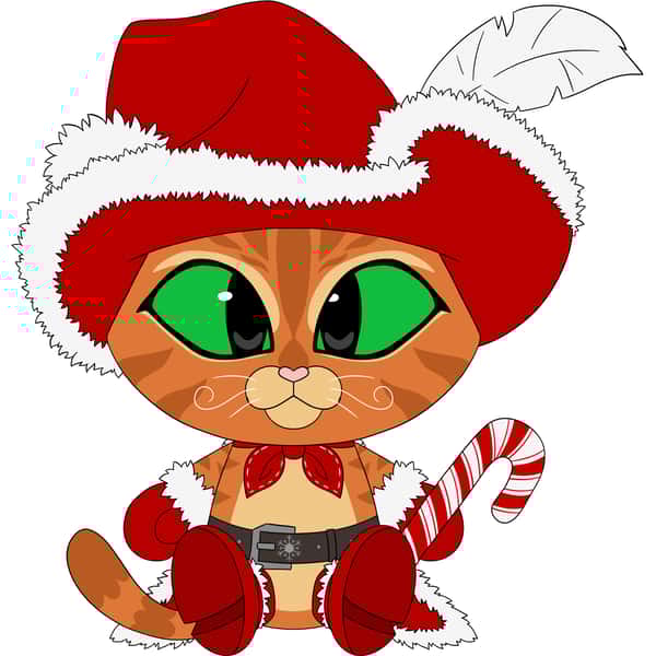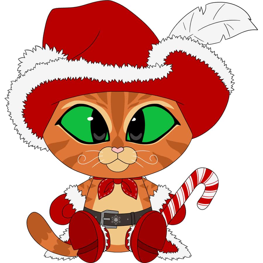 Puss in Boots makes a 9in plushie debut but with a seasonal twist! His outfit has a new christmas appearance where it becomes red with white fuzzy accents! He also wears mittens and carries a candy cane! The fuzzy ball on his hat also makes a little bell sound when you shake it! Bring this little cuddly furball into your home!
