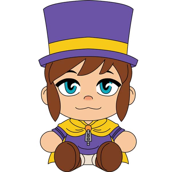 Peck! Hat kid debuts as a Youtooz in plush form. She is wearing a purple gown and a yellow cloak, with a matching yellow and purple top hat! Her brown hair goes down to her shoulders, with a ponytail sticking out from the back.