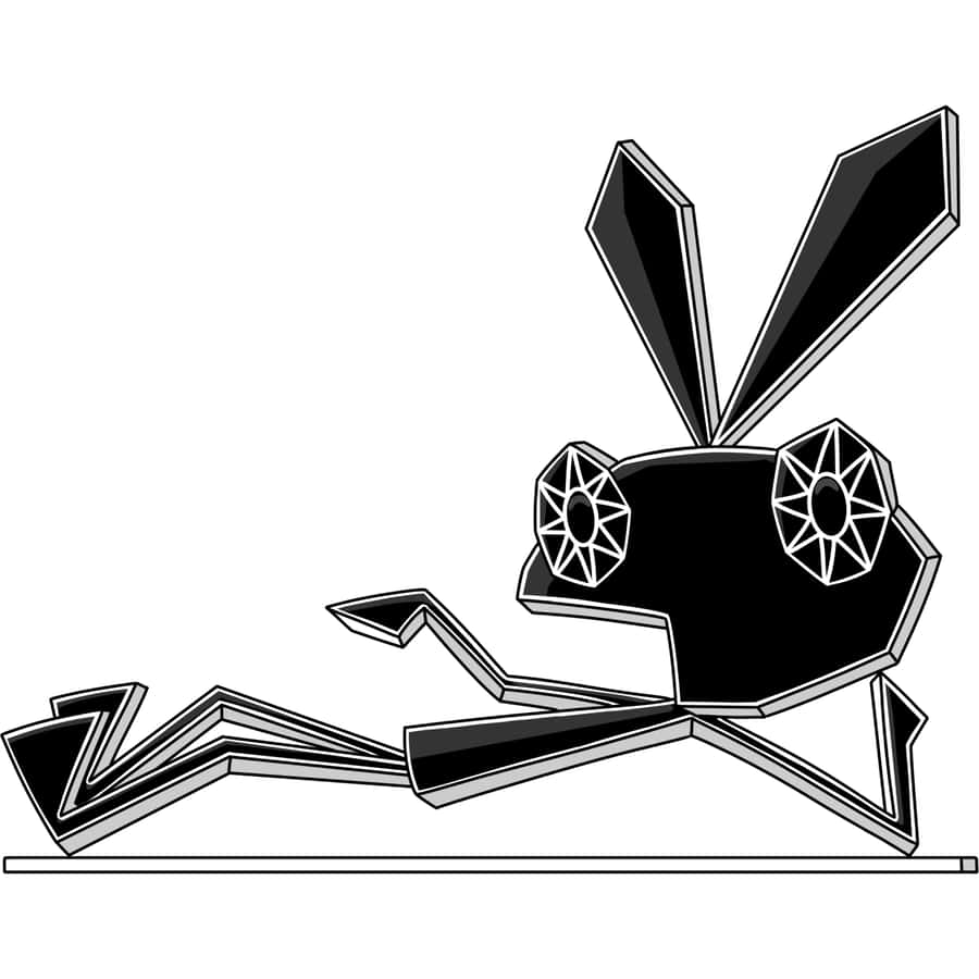 Vibri from the playstation classic Vib-Ribbon. In this pose inspired by the box art of the 1999 PS1 game, with Vibri resting on a line. The vinyl figure is mostly flat with a bit of depth to try and replicate the games unique artstyle